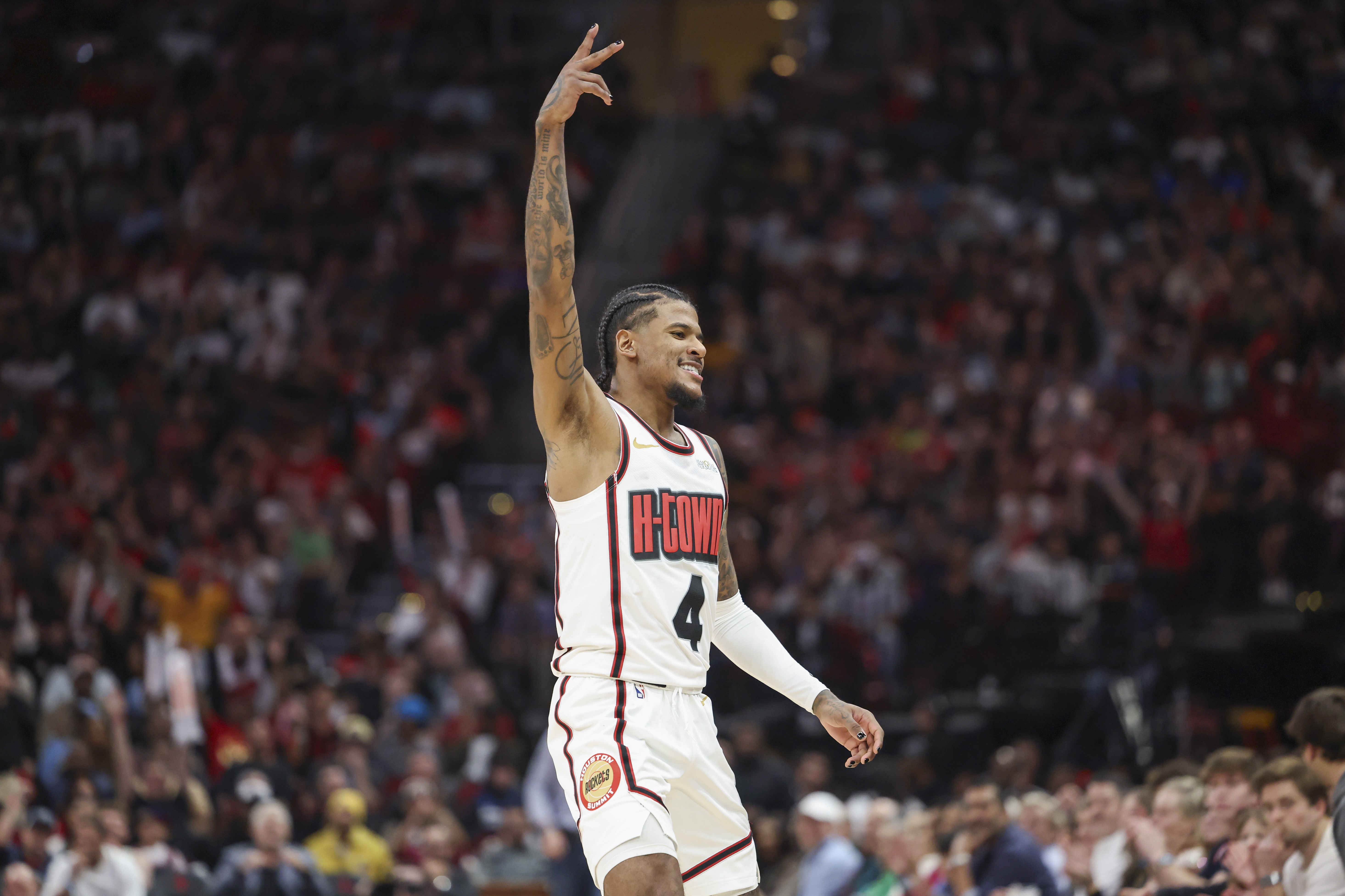 作為榜單上第三位火箭球員,阿門-湯普森是2023年選秀的第4順位秀,盡管他尚未達(dá)到球星級(jí)別的天賦上限,但毫無疑問,他已經(jīng)展現(xiàn)出未來成為球星的潛力。阿門-湯普森以及他的雙胞胎兄弟——活塞的奧薩爾-湯普森(無緣此榜單),都是令人著迷的球員,因?yàn)樗麚碛?.01米的出色鋒線身材(還有不錯(cuò)的臂展),但由于外線投籃不佳,他的技術(shù)仍然顯得有些粗糙。但阿門-湯普森絕對(duì)是一位怪胎級(jí)球員,每次踏上球場(chǎng)都全力以赴,不停地沖擊籃筐,并輕松地在籃筐上方完成終結(jié)。他在防守端也是一頭猛獸,橫向移動(dòng)極為出色,并且擁有與年齡不相符的身體對(duì)抗和韌性(問問熱火的泰勒-希羅就知道了)。