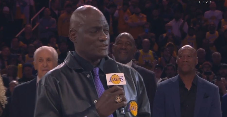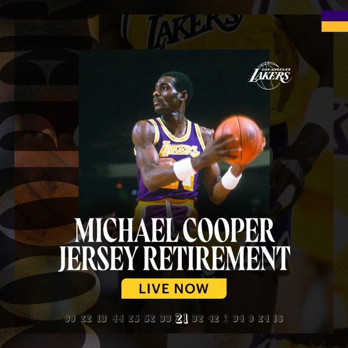 1月14日訊 湖人VS馬刺中場(chǎng),湖人正式為球隊(duì)名宿邁克爾-庫(kù)珀退役21號(hào)球衣。