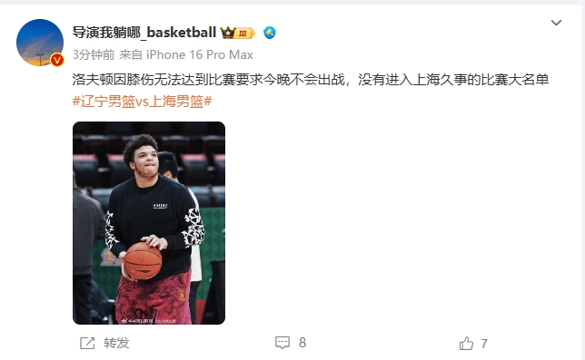 01月14日訊 據(jù)@媒體人導(dǎo)演我躺哪_basketball報(bào)道,上海男籃外援洛夫頓因膝傷無(wú)法達(dá)到比賽要求今晚不會(huì)出戰(zhàn),他沒(méi)有進(jìn)入球隊(duì)今晚的比賽大名單。