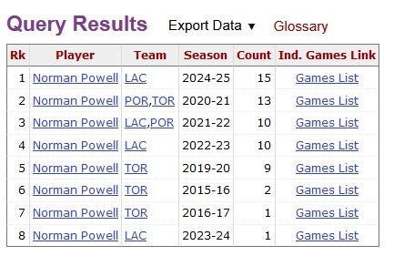 據(jù)統(tǒng)計,鮑威爾本賽季至今已經(jīng)16次單場砍下25+,這也創(chuàng)了他個人的單賽季新高。此前紀(jì)錄為2020-21賽季的13次。