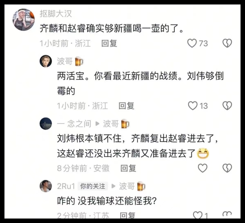 網(wǎng)友:齊麟&趙睿夠新疆喝一壺 趙睿:咋的 沒我輸球也怪我?