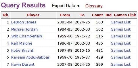 據(jù)統(tǒng)計(jì),這是杜蘭特生涯第400次砍下30+,他也成為NBA歷史第7個(gè)做到這點(diǎn)的球員。排名前六的分別是:詹姆斯、喬丹、張伯倫、馬龍、科比、賈巴爾。