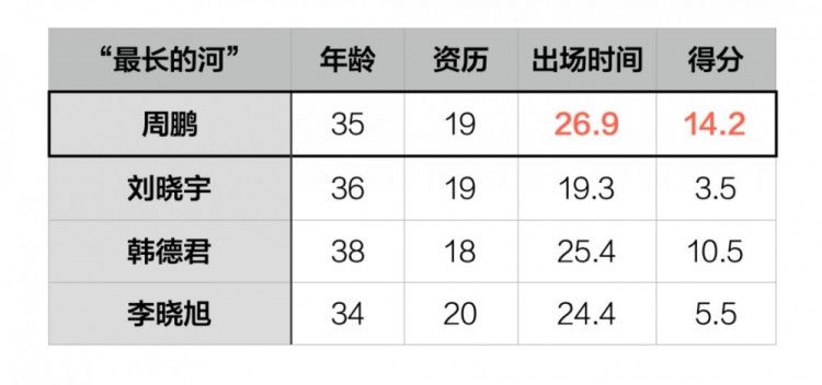 “最長的河”和“最高的山”,也許能夠用來形容這賽季35歲的周鵬。