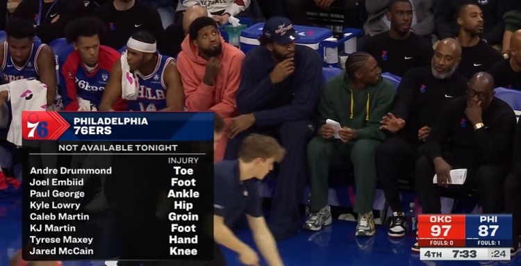 發(fā)布時間:2025年01月15日 12:51點擊:欄目:籃球新聞 傷員以及受傷部位:德拉蒙德 腳趾恩比德 腳喬治 腳踝洛瑞 臀部凱萊布-馬丁 腹股溝小肯揚-馬丁 腳馬克西 手麥凱恩 膝蓋 除特別注明外,本站所有內(nèi)容均為九球直播整理排版,轉(zhuǎn)載請注明出處:76人今日共8人傷缺 喬治/恩比德/馬克西場邊便裝觀賽 本文標簽: 籃球 nba 76人 恩比德