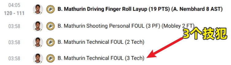 剛剛結(jié)束的騎士127-117戰(zhàn)勝步行者的比賽,馬瑟林吃到3個技術(shù)犯規(guī)被罰下,評論區(qū)就有不少吧友問啦:“哎呀怎么三個技犯才驅(qū)逐?是不是紀(jì)錄?”