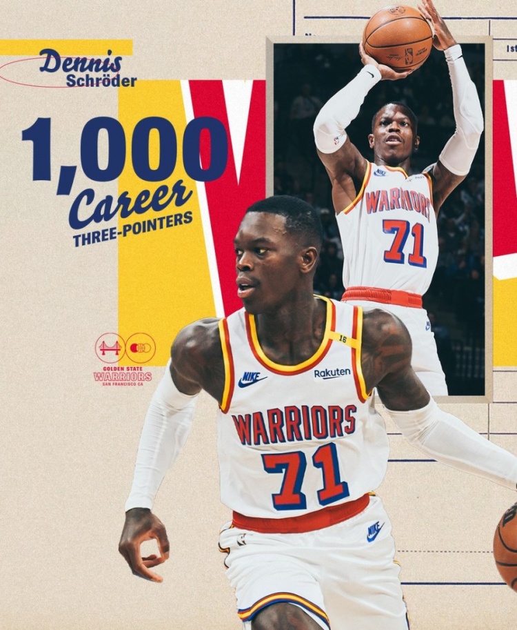 開場,施羅德連續(xù)命中2記三分,他的NBA生涯三分命中數(shù)突破1000大關(guān),他也成為第二名三分命中數(shù)超過1000的德國球員,第一位是諾維茨基(1982)。