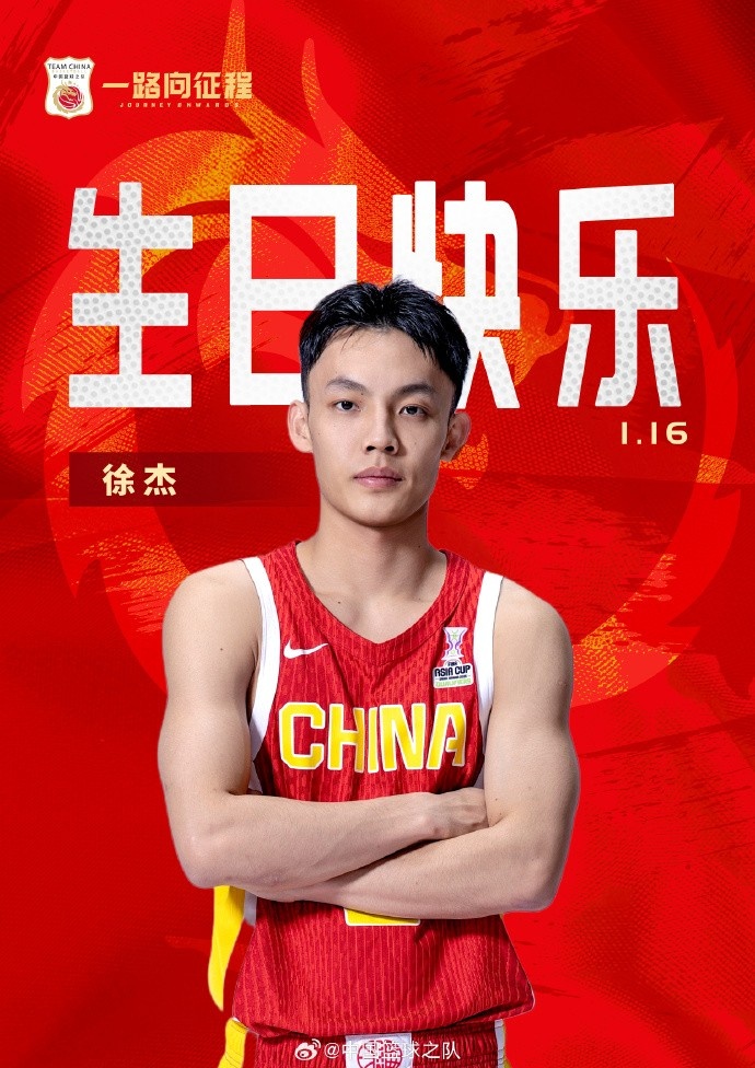 1月16日訊 今天是廣東男籃后衛(wèi)徐杰的25歲生日,中國籃球之隊(duì)官博為其送上祝福。