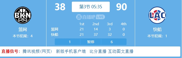 不過快船已經(jīng)領(lǐng)先籃網(wǎng)50多分...