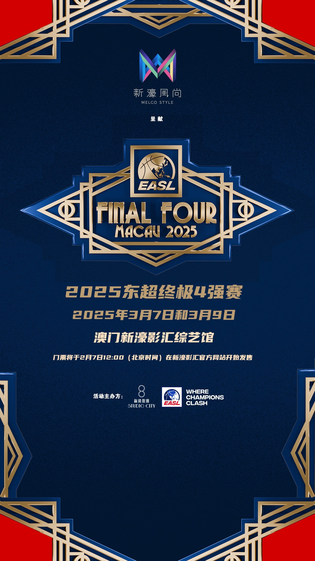 2025年3月7日(星期五)的2場半決賽,對陣雙方都是通過漫長小組賽激戰(zhàn)而晉級終極4強賽的亞洲頂級球隊;3月9日(星期日),2支半決賽獲勝球隊進行冠軍戰(zhàn),2支失利球隊進行季軍戰(zhàn)。門票將于2月7日12:00(北京時間)在新濠影匯官方網(wǎng)站正式發(fā)售(https://studiocity-macau.com/en)。