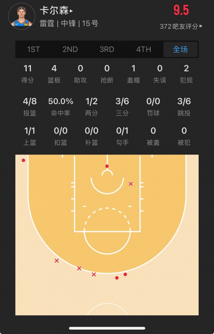 雷霆落選秀 布蘭登-卡爾森 登場17.5分鐘