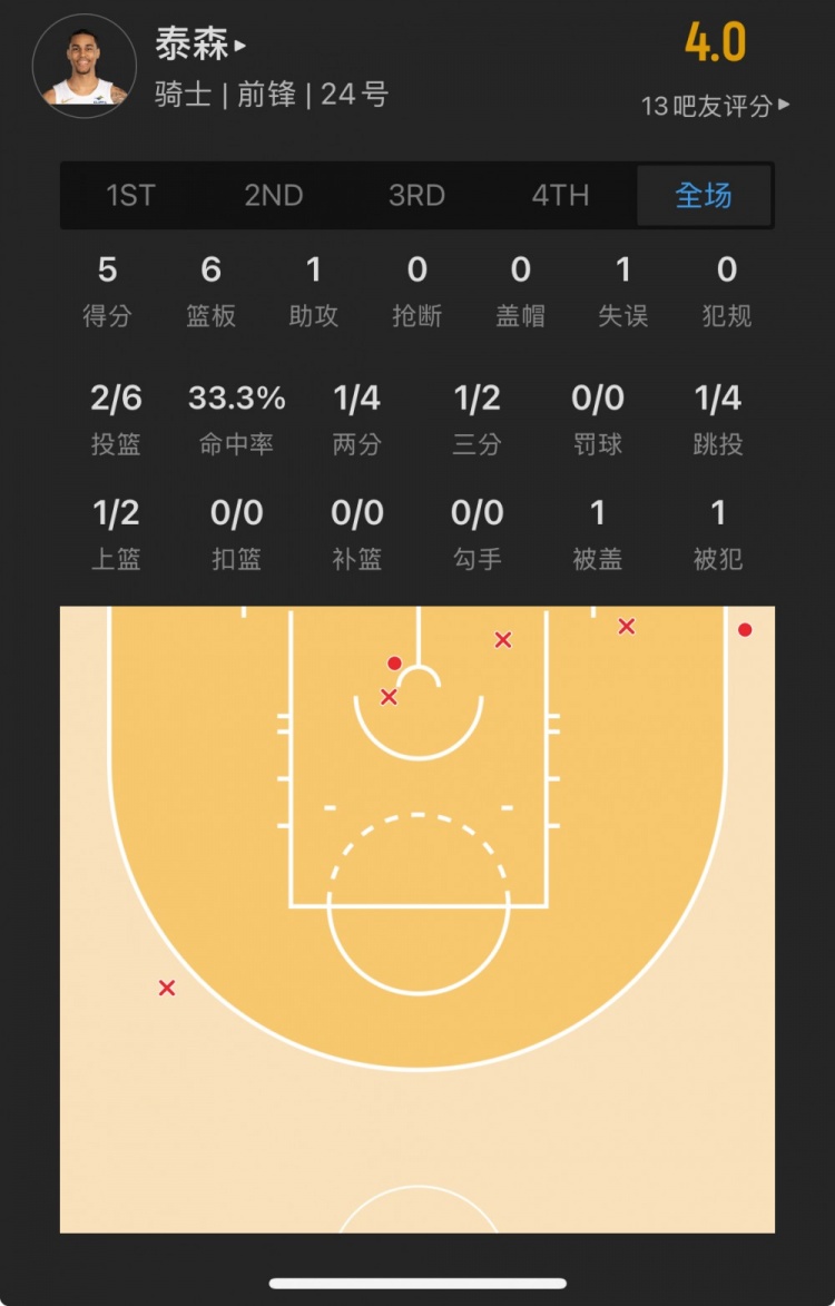 騎士20號秀 杰倫-泰森 登場12.0分鐘