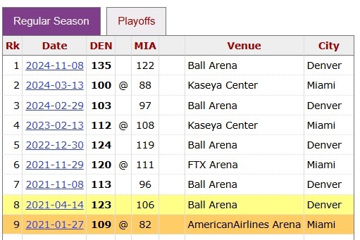 發(fā)布時間:2025年01月18日 11:54點(diǎn)擊:欄目:籃球新聞 1月18日訊 今日NBA常規(guī)賽,掘金客場133-113輕取熱火。這樣一來,掘金常規(guī)賽面對熱火已經(jīng)拿下10連勝,上一次輸球還是在2020年8月1日。今日賽前數(shù)據(jù) 除特別注明外,本站所有內(nèi)容均為九球直播整理排版,轉(zhuǎn)載請注明出處:掘金常規(guī)賽面對熱火已拿下10連勝 上次輸球還是在2020年8月 本文標(biāo)簽: nba 籃球 西部 東部 熱火 掘金