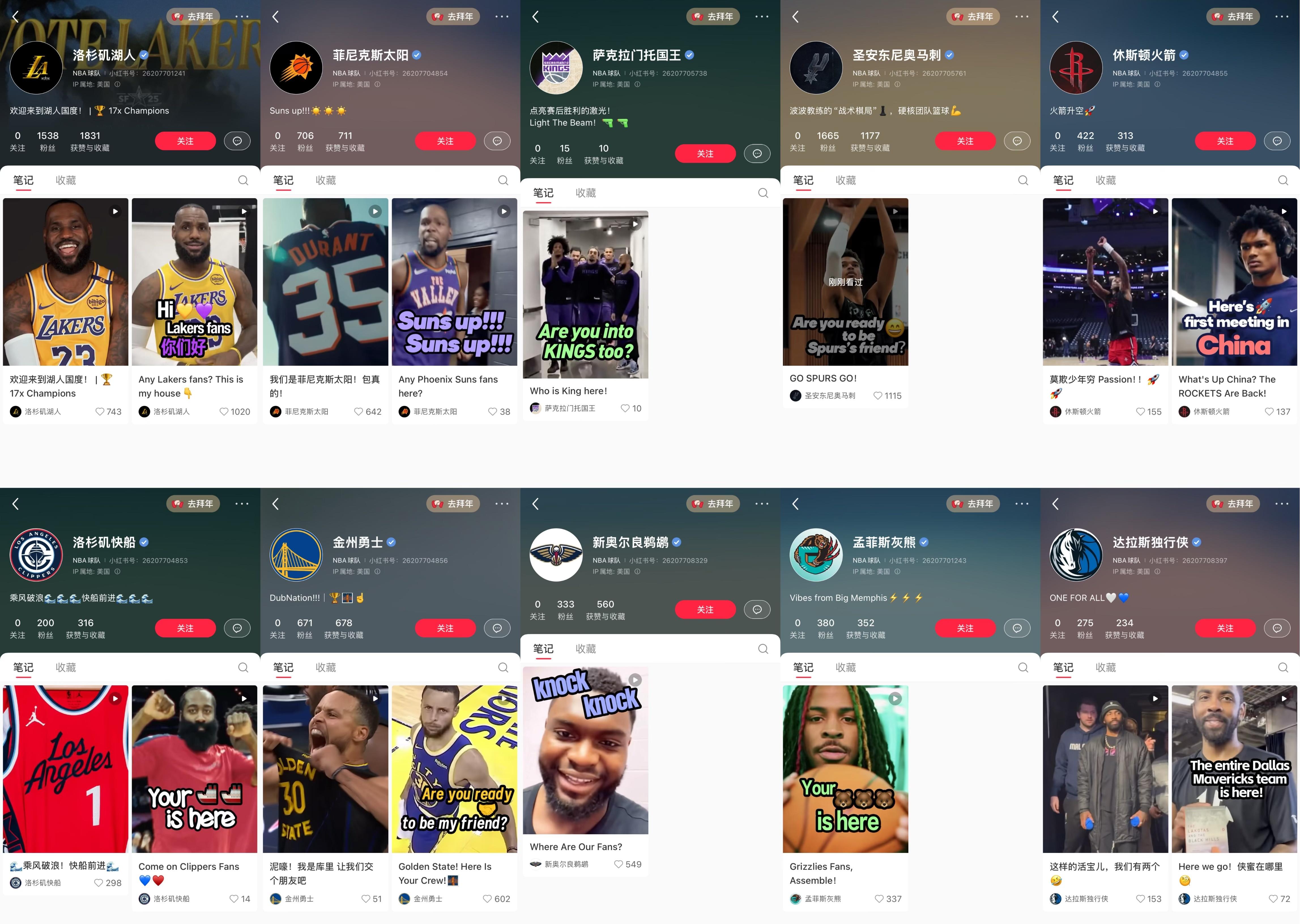 前兩天國(guó)外TikTok難民陸續(xù)涌入小紅書(shū)和國(guó)內(nèi)網(wǎng)友對(duì)上口徑之后,NBA各球隊(duì)昨晚連夜入駐小紅書(shū)成立官方賬號(hào)矩陣,這陣仗可以說(shuō)是前所未見(jiàn)且聲勢(shì)浩大,一波關(guān)于tt封禁的“防守反擊”逆轉(zhuǎn)高潮從大洋彼岸就這么毫無(wú)預(yù)警地吹了過(guò)來(lái)。