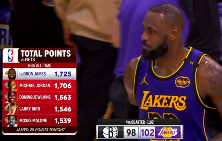 發(fā)布時間:2025年01月18日 15:04點擊:欄目:籃球新聞 1月18日訊 湖人主場102-101險勝籃網(wǎng)。本場比賽,詹姆斯出戰(zhàn)35分鐘,17投12中,三分6中4砍下29分7籃板8助攻2次蓋帽。據(jù)統(tǒng)計,詹姆斯生涯面對籃網(wǎng)得到1725分,超越喬丹,上升至NBA歷史第一。 除特別注明外,本站所有內(nèi)容均為九球直播整理排版,轉(zhuǎn)載請注明出處:詹姆斯生涯面對籃網(wǎng)得分來到1725 超越喬丹&上升至歷史第一 本文標(biāo)簽: nba 籃球 湖人 詹姆斯