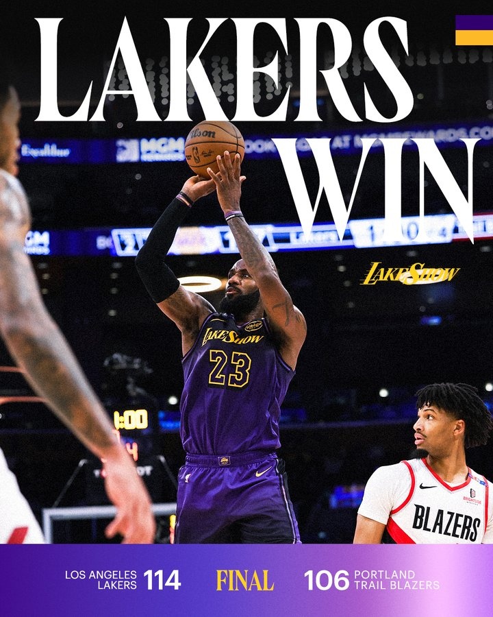 發(fā)布時間:2025年01月03日 14:51點擊:欄目:籃球新聞 1月3日訊 NBA常規(guī)賽,湖人主場114-106力克開拓者。賽后湖人官方曬出贏球海報,封面人物給到本場表現(xiàn)搶眼的詹姆斯!全場比賽詹姆斯出戰(zhàn)36分鐘,25投15中,三分球10中7,2罰1中得到全場最高的38分外加3板8助。 除特別注明外,本站所有內(nèi)容均為九球直播整理排版,轉(zhuǎn)載請注明出處:爆砍38分率隊贏球!湖人官方曬出贏球海報 封面人物給到詹姆斯 本文標(biāo)簽: nba 籃球 湖人 詹姆斯
