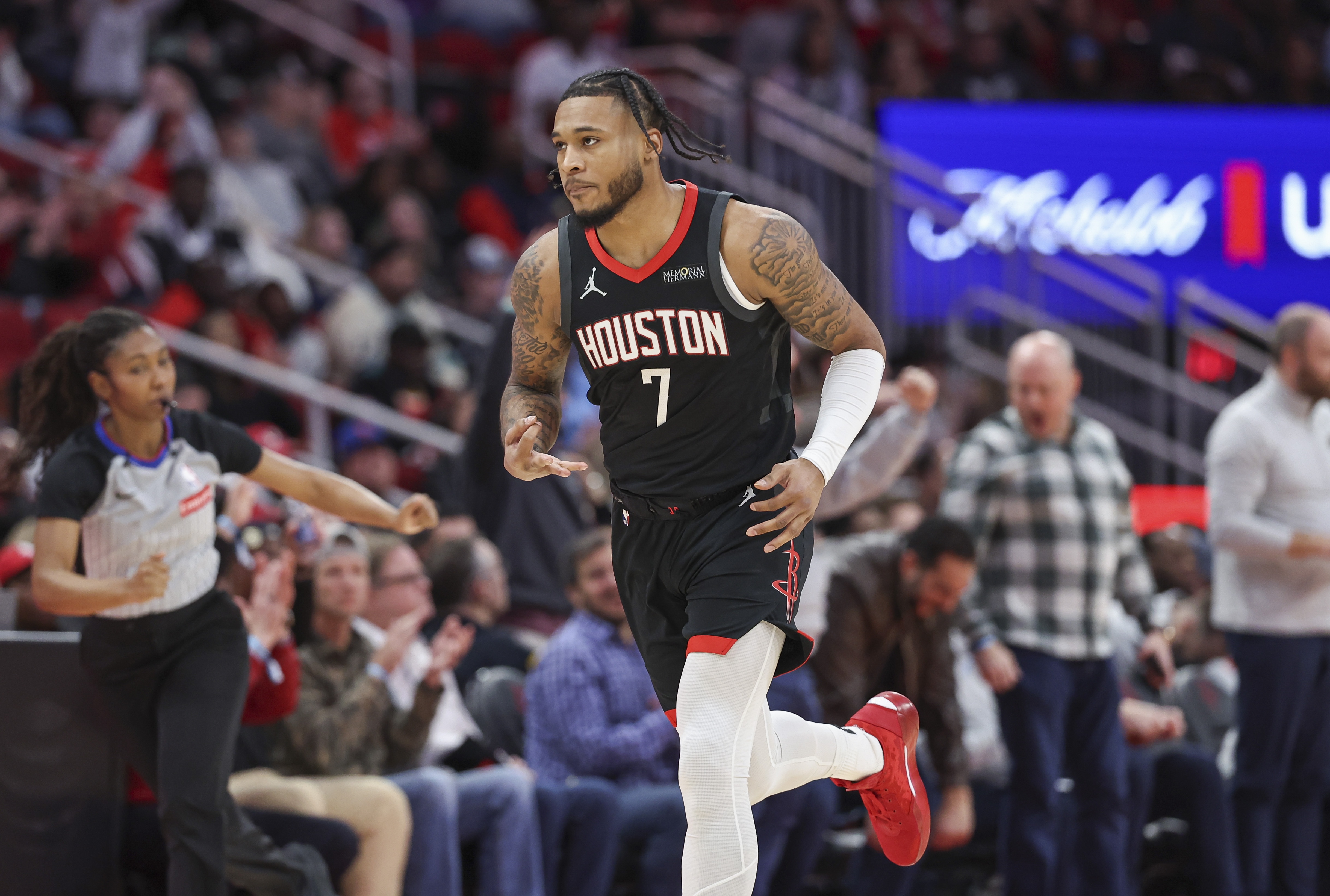 火箭球員惠特摩爾上半場(chǎng)替補(bǔ)出戰(zhàn)表現(xiàn)出相當(dāng)不錯(cuò)的積極性,沖搶籃板很積極,不過在進(jìn)攻上手感不太理想。