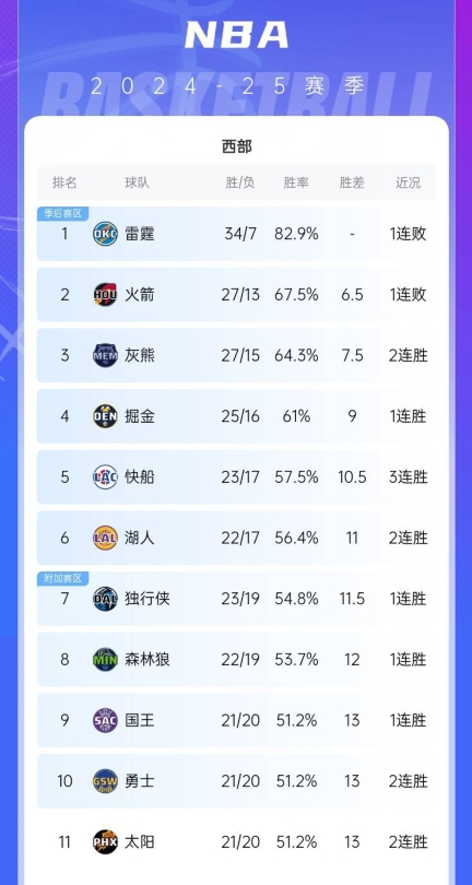 勇士取勝之后戰(zhàn)績來到21勝20負(fù),和國王、太陽持平,三隊?wèi)?zhàn)績相同時看相互交手的戰(zhàn)績,國王排名第九,勇士在第十,太陽掉一位去到第11。