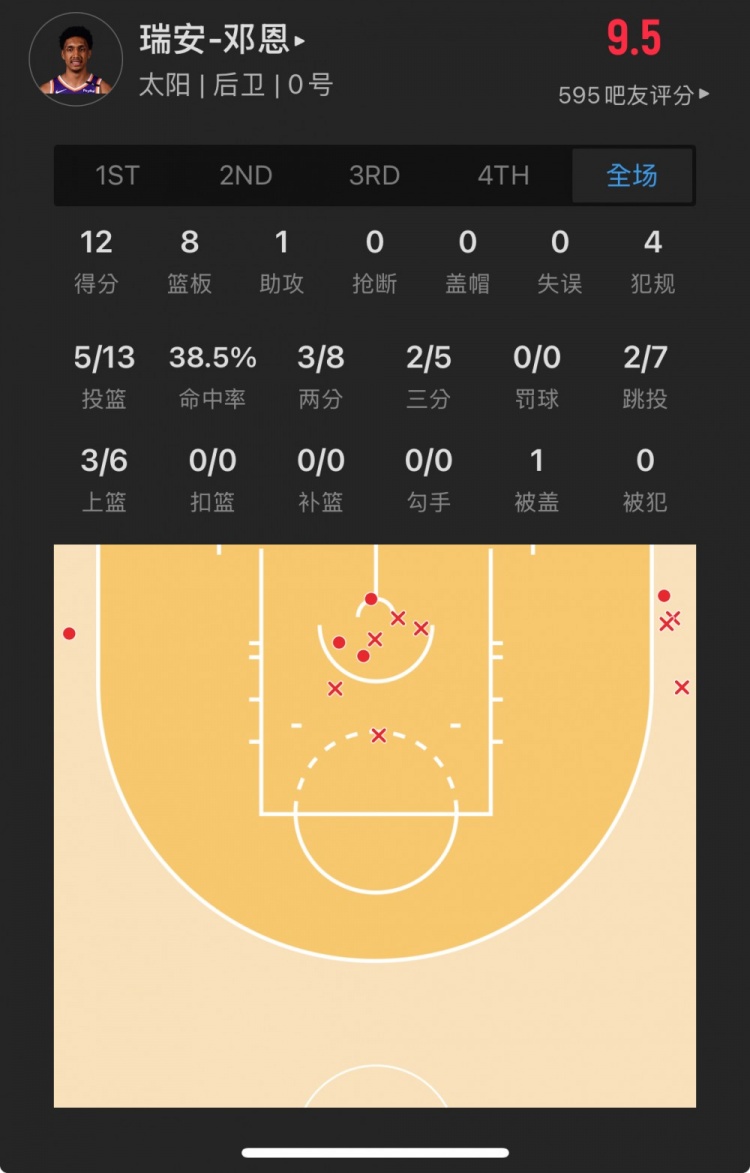 太陽28號秀 瑞安-鄧恩 登場29.3分鐘