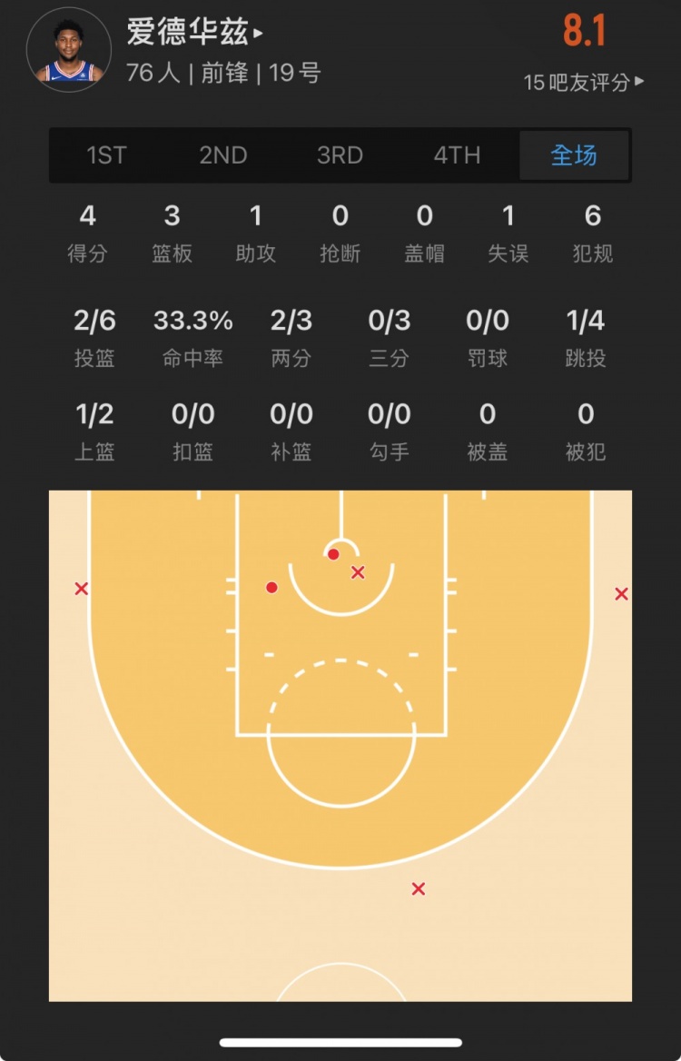 76人41號秀 阿德姆-博納 登場18.7分鐘