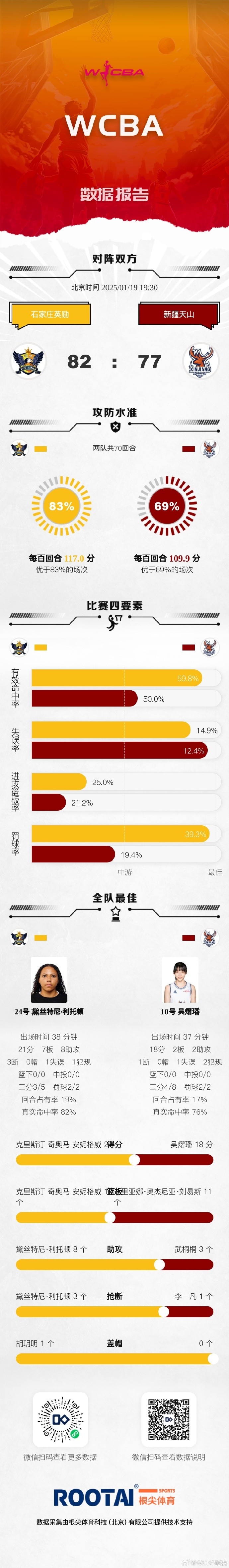 發(fā)布時間:2025年01月19日 21:51點擊:欄目:籃球新聞 1月19日常規(guī)賽A組第二十四輪石家莊英勵 82:77 新疆天山北京首鋼園 103:74 福建晉江眾騰 除特別注明外,本站所有內(nèi)容均為九球直播整理排版,轉(zhuǎn)載請注明出處:WCBA今日賽果:石家莊擊敗新疆 北京大勝福建晉江眾騰 本文標(biāo)簽: 籃球 CBA 中國籃球 WCBA 轉(zhuǎn)載