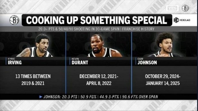 發(fā)布時(shí)間:2025年01月20日 09:51點(diǎn)擊:欄目:籃球新聞 180俱樂部指投籃命中率50+%、三分命中率40+%,罰球命中率90+%;籃網(wǎng)隊(duì)史此前歐文13次做到,KD1次 除特別注明外,本站所有內(nèi)容均為九球直播整理排版,轉(zhuǎn)載請注明出處:卡梅隆-約翰遜30場跨度內(nèi)場均20+且命中率達(dá)180 隊(duì)史比肩杜歐 本文標(biāo)簽: nba 籃球 東部 籃網(wǎng) 杜蘭特 歐文