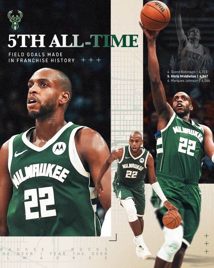 這樣一來,米德爾頓雄鹿生涯進(jìn)球數(shù)達(dá)到4547個(gè),超越馬奎斯-約翰遜(4546個(gè))排名隊(duì)史第5,隊(duì)史第一是字母哥。