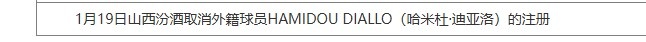 1月20日訊 今天,CBA官網(wǎng)更新了外籍球員注冊(cè)信息,山西取消了外援迪亞洛的注冊(cè)。