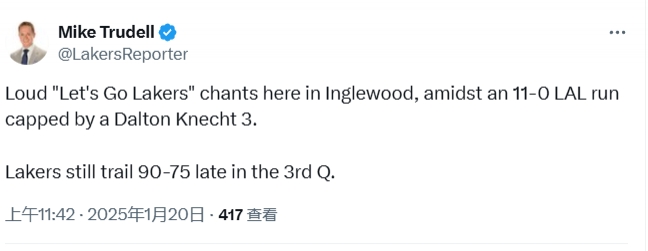 發(fā)布時(shí)間:2025年01月20日 11:51點(diǎn)擊:欄目:籃球新聞 克內(nèi)克特三分命中,湖人11-0追分這波攻擊波也讓快船主場響起了湖人加油的呼聲 除特別注明外,本站所有內(nèi)容均為九球直播整理排版,轉(zhuǎn)載請注明出處:球迷終于敢說話了!11-0攻擊波 快船主場響起“湖人加油”的呼聲 本文標(biāo)簽: 籃球 nba 湖人 快船