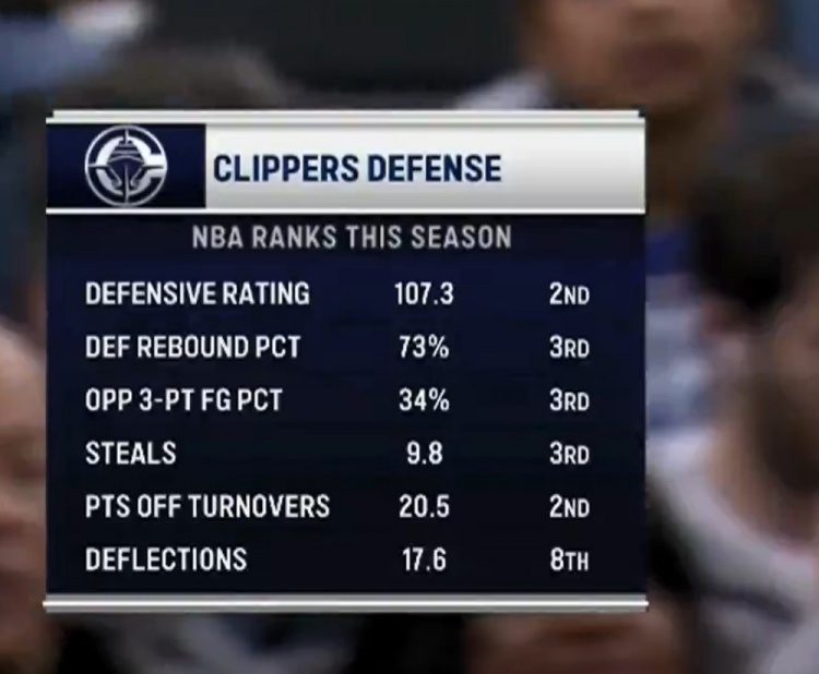 本賽季快船多項防守數(shù)據(jù)聯(lián)盟前茅: