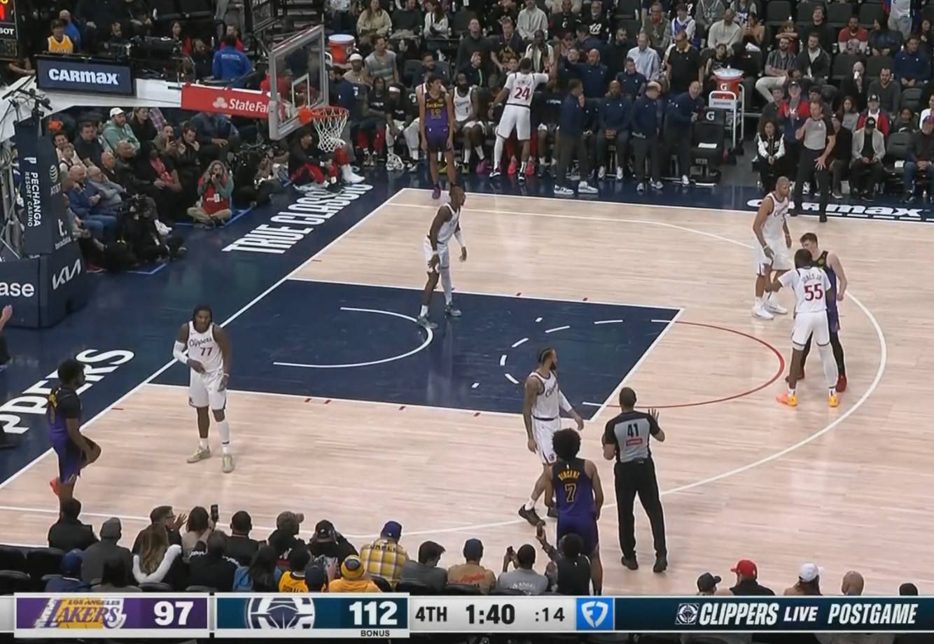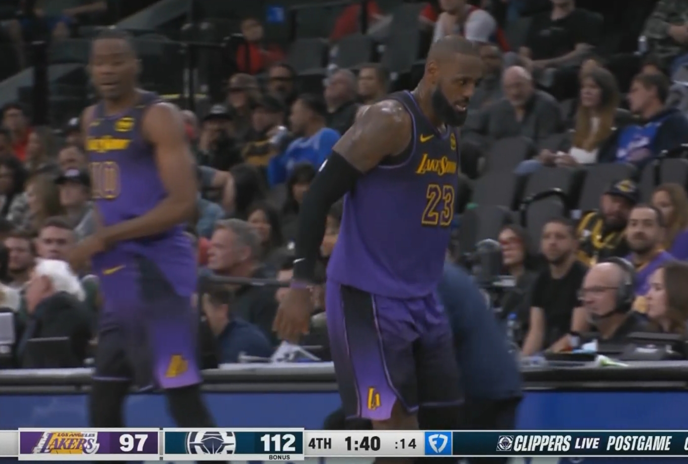 發(fā)布時間:2025年01月20日 12:51點(diǎn)擊:欄目:籃球新聞 除特別注明外,本站所有內(nèi)容均為九球直播整理排版,轉(zhuǎn)載請注明出處:1分40秒落后15分 湖人用布朗尼換下詹姆斯 投降了! 本文標(biāo)簽: 籃球 nba 湖人 快船 布朗尼