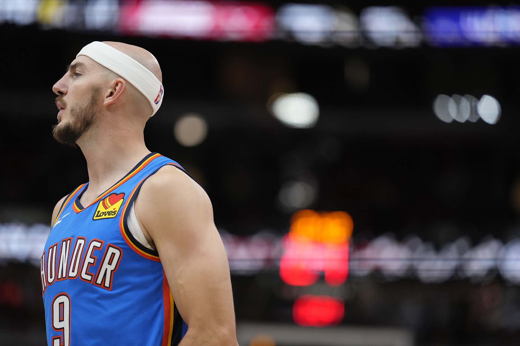 我們?nèi)匀徊恢拦栯┨┮驅(qū)⑷绾闻c霍姆格倫搭檔,因?yàn)楹笳咴诠栯┨┮驈氖植抗钦壑谢謴?fù)之前就已經(jīng)因髖部骨折缺陣。與此同時(shí),卡魯索并未提供預(yù)期的投籃提升,即使他上賽季在公牛投出了職業(yè)生涯新高的41%三分命中率。盡管賽季初遭遇傷病困擾,雷霆仍然是NBA凈勝分最高的球隊(duì)。