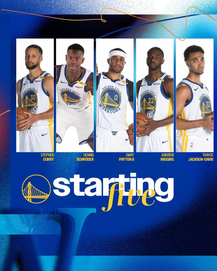 本場(chǎng)比賽追夢(mèng)缺戰(zhàn),勇士賽前公布了本場(chǎng)比賽首發(fā)陣容:庫(kù)里、施羅德、維金斯、佩頓二世、TJD。
