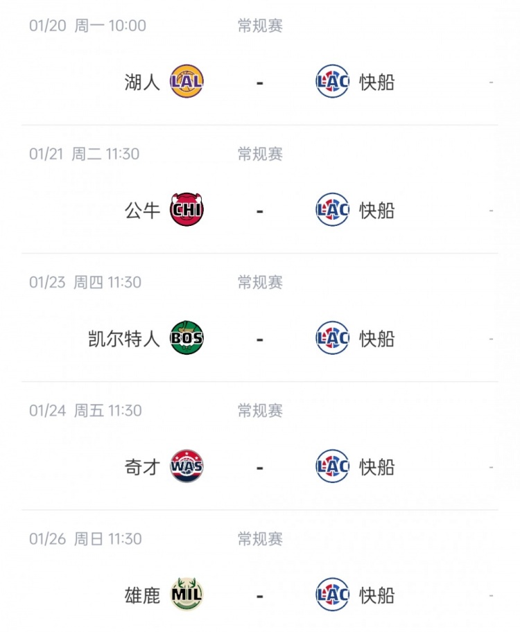 01月21日訊 快船昨日戰(zhàn)勝湖人,今日背靠背不敵公牛。