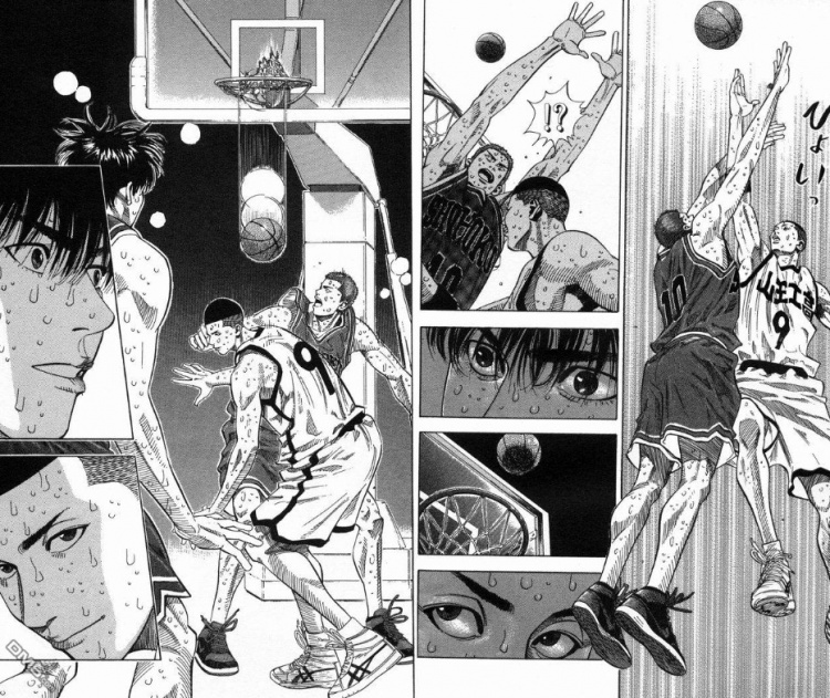 之后流川楓突破澤北回一個拋射,山王全隊震驚。