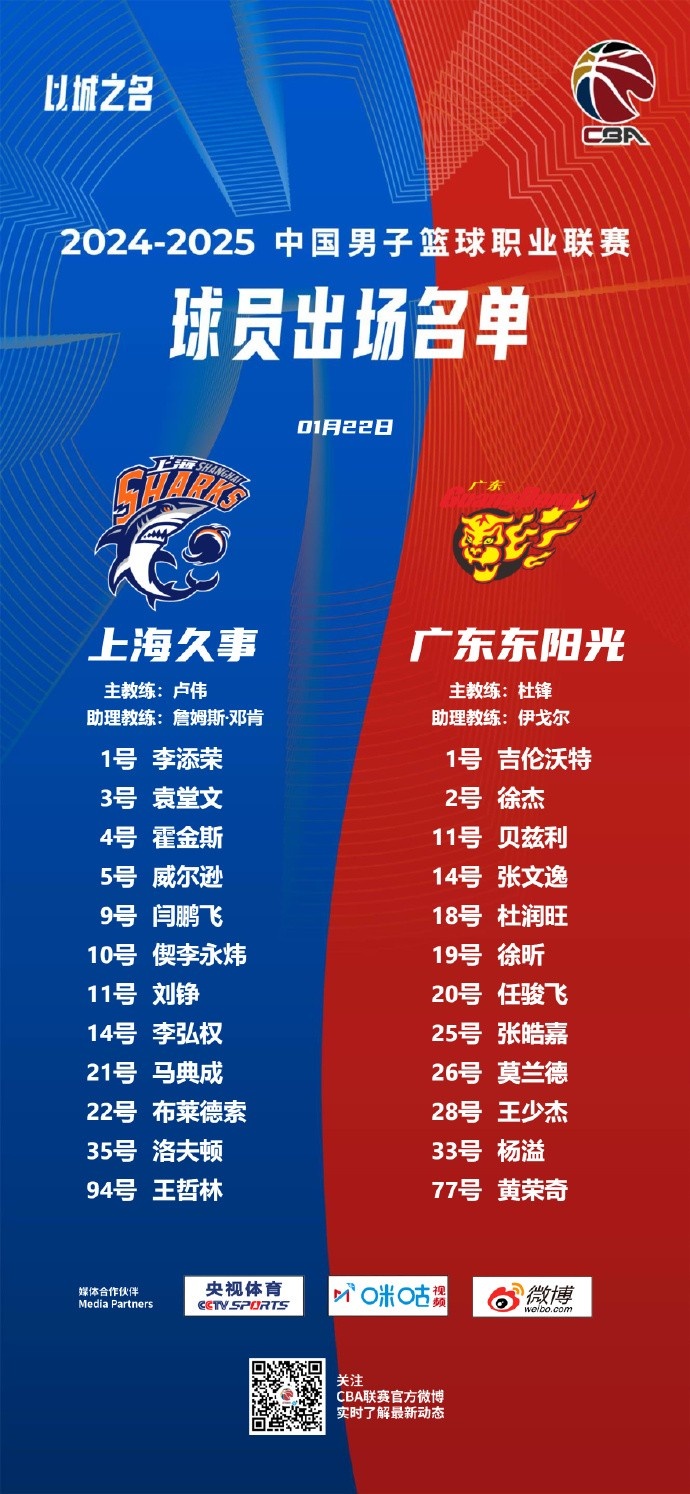 發(fā)布時間:2025年01月22日 20:55點擊:欄目:籃球新聞 1月22日訊 CBA常規(guī)賽,廣東對陣上海的比賽將在今晚開始。賽前,據(jù)《東方體育日報》記者薛思佳報道,中國男籃主帥郭士強現(xiàn)場觀戰(zhàn)滬粵之戰(zhàn),新一期國家隊集訓名單兩支球隊估計都會有球員入選。本場比賽兩隊出場名單如下: 除特別注明外,本站所有內(nèi)容均為九球直播整理排版,轉(zhuǎn)載請注明出處:考察誰呢?滬記:中國男籃主帥郭士強現(xiàn)場觀戰(zhàn)滬粵之戰(zhàn) 本文標簽: CBA 中國籃球 籃球 上海 廣東 轉(zhuǎn)載
