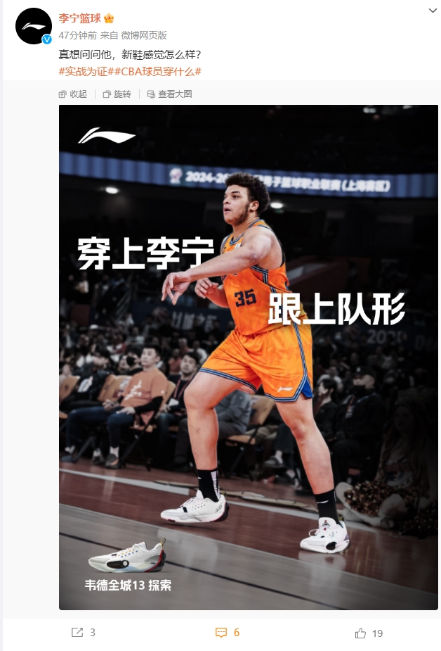賽后,李寧籃球官方也在社媒中曬出了一張海報(bào),并配文:“真想問問他,新鞋感覺怎么樣?”