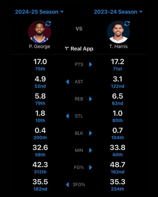發(fā)布時間:2025年01月23日 17:31點擊:欄目:籃球新聞 除特別注明外,本站所有內容均為九球直播整理排版,轉載請注明出處:大升級?本賽季喬治場均17分5.8板 上賽季托哈17.2分6.5板 本文標簽: nba 籃球 東部 76人 喬治