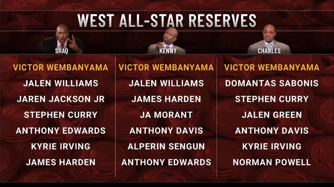 01月24日訊 2025年舊金山NBA全明星首發(fā)公布,TNT給出了三位名嘴他們心中的替補陣容。