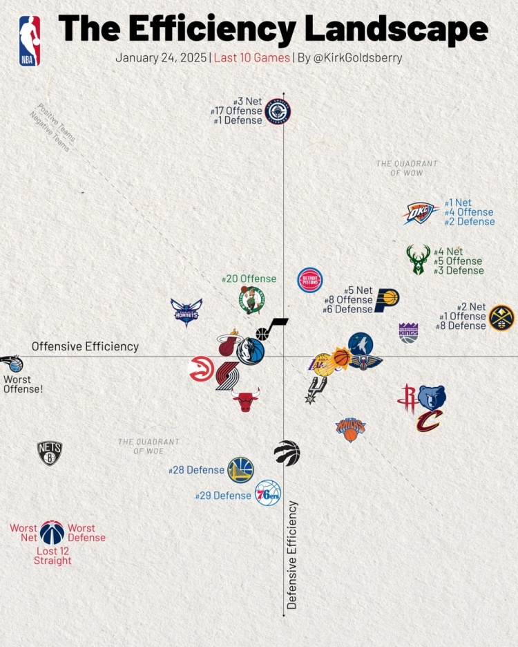 發(fā)布時(shí)間:2025年01月25日 04:53點(diǎn)擊:欄目:籃球新聞 除特別注明外,本站所有內(nèi)容均為九球直播整理排版,轉(zhuǎn)載請(qǐng)注明出處:近10場(chǎng)攻防效率:快船防守聯(lián)盟獨(dú)一檔 掘金進(jìn)攻聯(lián)盟第一! 本文標(biāo)簽: nba 籃球 東部 湖人 76人 西部 勇士 雄鹿 太陽(yáng) 凱爾特人 火箭 籃網(wǎng) 獨(dú)行俠 猛龍 快船 黃蜂 鵜鶘 騎士 開(kāi)拓者 步行者 灰熊 活塞 熱火 森林狼 爵士 老鷹 掘金 公牛 馬刺 奇才 國(guó)王 魔術(shù) 雷霆 尼克斯