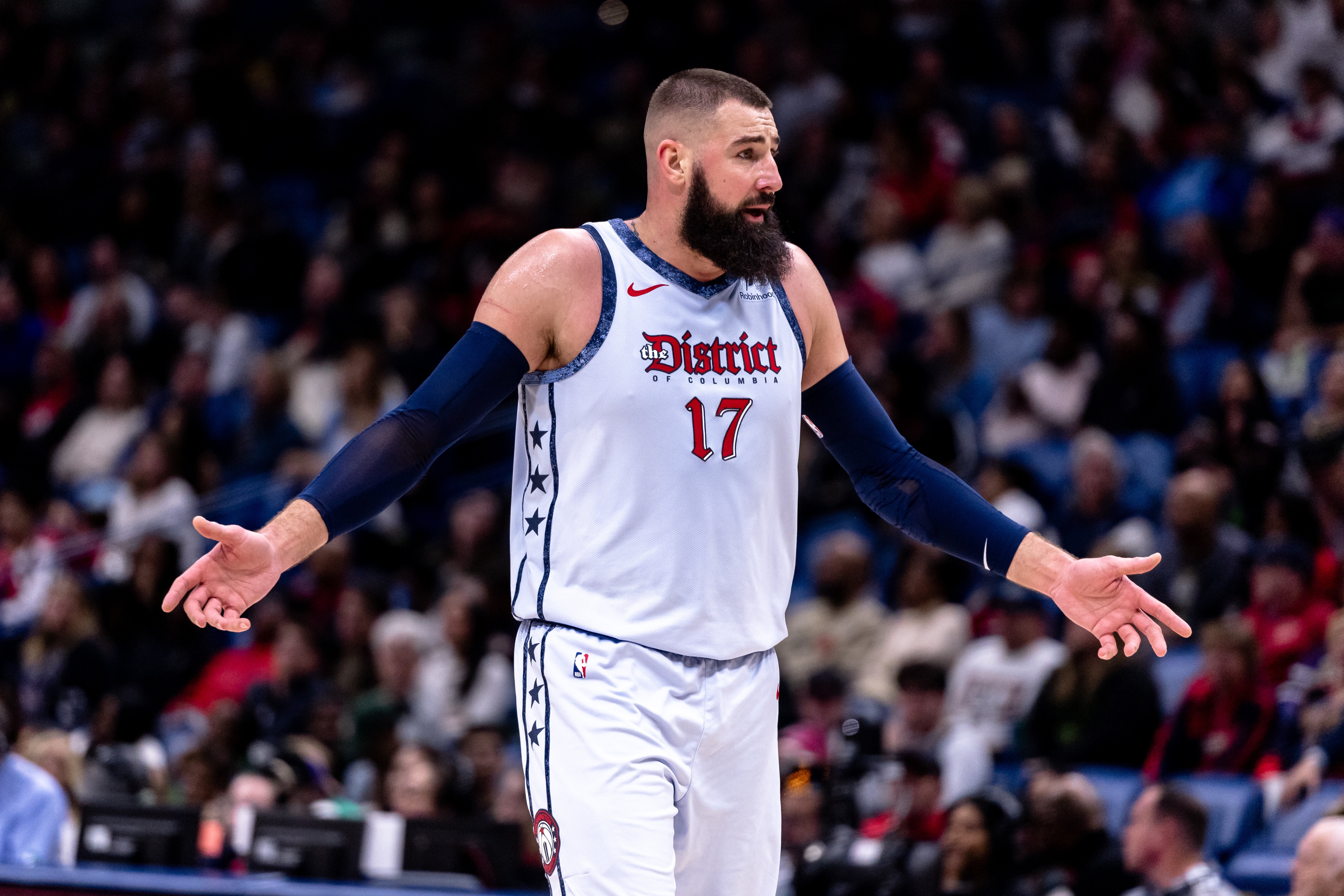 由于腳步速度較慢,你可能很難在季后賽中讓他上場(chǎng)。但以一個(gè)合理的價(jià)格簽下一名替補(bǔ)中鋒,你可能不需要過多關(guān)注他在季后賽中的表現(xiàn)。任何需要增加內(nèi)線深度的球隊(duì)都可以考慮引進(jìn)瓦蘭丘納斯以獲得幫助,我無法想象他的價(jià)格會(huì)超過幾個(gè)次輪選秀權(quán)。如果我是76人,我會(huì)每天給奇才打電話。沒有哪支球隊(duì)比76人更需要一名精英替補(bǔ)中鋒,而瓦蘭丘納斯將是這個(gè)角色的完美人選,其他球隊(duì)如步行者、掘金和湖人也可以使用另一名大個(gè)子球員。