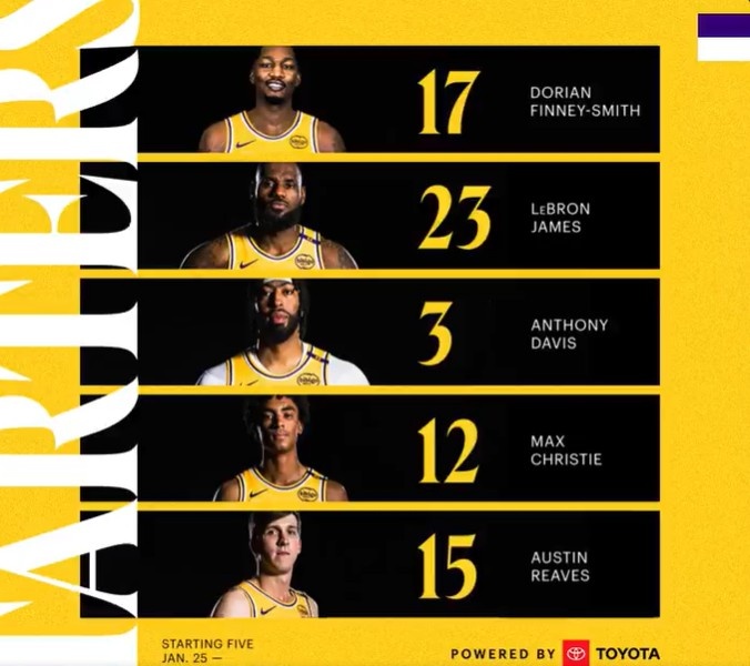 賽前,湖人公布了本場(chǎng)首發(fā):克里斯蒂、里夫斯、詹姆斯、芬尼-史密斯、濃眉。