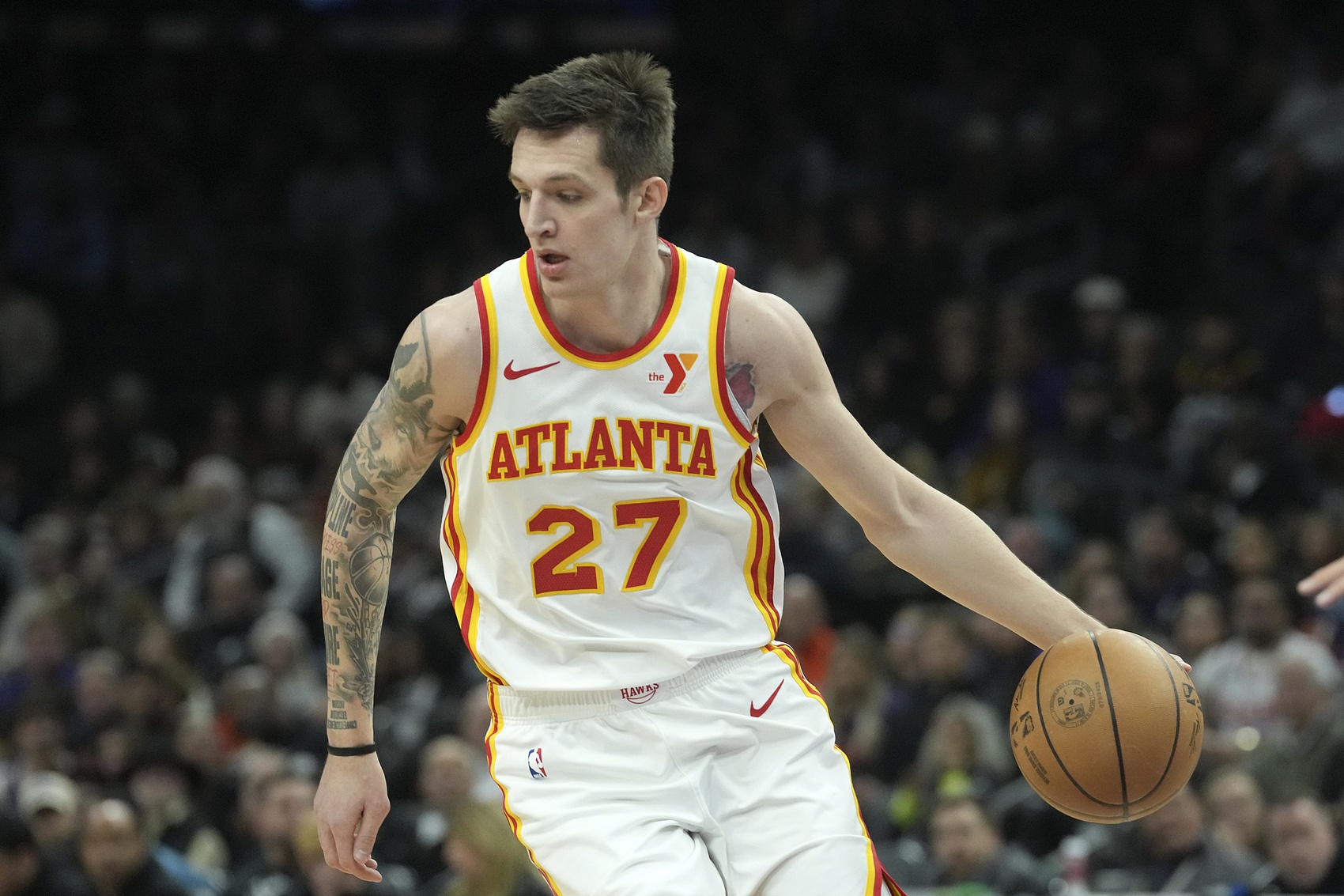 本場(chǎng)比賽,老鷹射手克雷伊奇高效發(fā)揮,打了35分鐘13投6中,三分11中6、罰球4中2拿到全隊(duì)最高20分外加2籃板7助攻3搶斷2蓋帽,正負(fù)值-16。