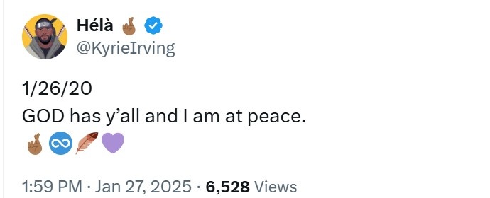 發(fā)布時間:2025年01月27日 14:51點擊:欄目:籃球新聞 1月27日訊 五年前的今天,科比和二女兒Gigi因直升機失事去世。今天,獨行俠球星歐文更推道:“2020年1月26日,上帝擁有你們,我內(nèi)心感覺很平靜?!?/p> 除特別注明外,本站所有內(nèi)容均為九球直播整理排版,轉(zhuǎn)載請注明出處:歐文緬懷科比Gigi:上帝擁有你們 我內(nèi)心感覺很平靜 本文標簽: nba 籃球 獨行俠 歐文 科比