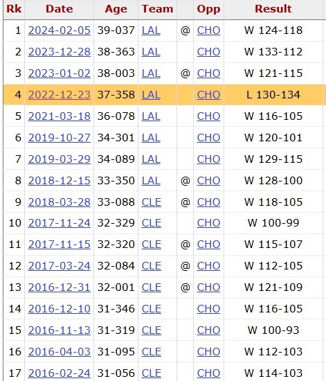 據(jù)統(tǒng)計(jì),從2016年2月份至今17次交手,詹姆斯對(duì)陣黃蜂取得了16勝1負(fù)的戰(zhàn)績(jī),僅在2022年12月23日的比賽中輸過(guò)1場(chǎng)。