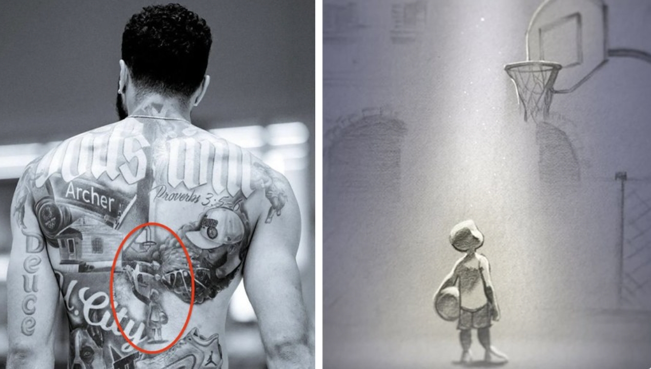 這處紋身是由科比制作的奧斯卡獲獎影片《親愛的籃球》中的主角。