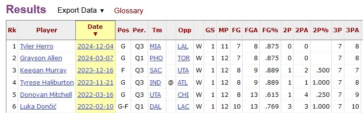 如果把范圍限制在首節(jié),那就是2024年3月7日的格雷森-阿倫,以及2022年2月10日的東契奇。