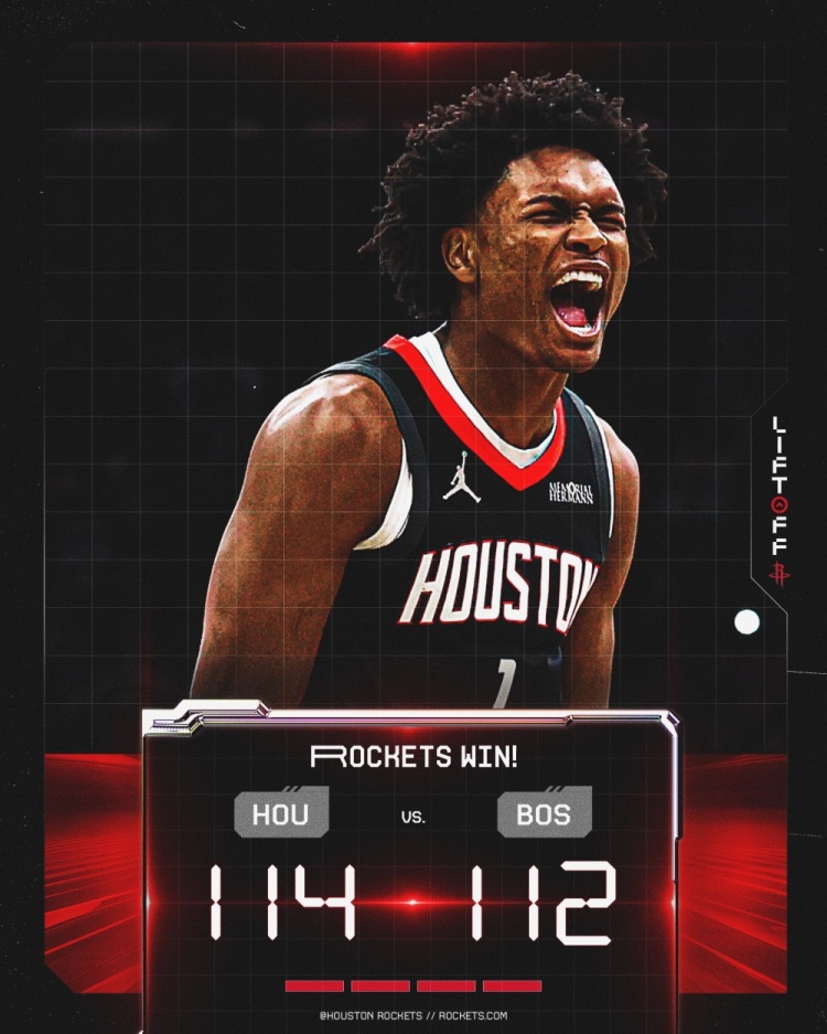 賽后火箭官方曬出本場(chǎng)贏(yíng)球海報(bào),投進(jìn)準(zhǔn)絕殺的阿門(mén)-湯普森登上封面。