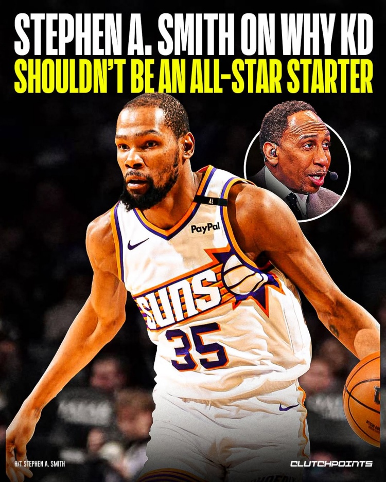 對此,NBA名嘴A-史密斯在節(jié)目中表示杜蘭特不該首發(fā),他說道:“凱文-杜蘭特是聯(lián)盟中的超級巨星,他絕對是非常出色的。我們都知道。但他本賽季缺席了10場比賽,并且太陽排在西部第十(實際是西部第八),他們本賽季的戰(zhàn)績沒有那么出色。所以對我來說,杜蘭特應該打替補?!?/p>