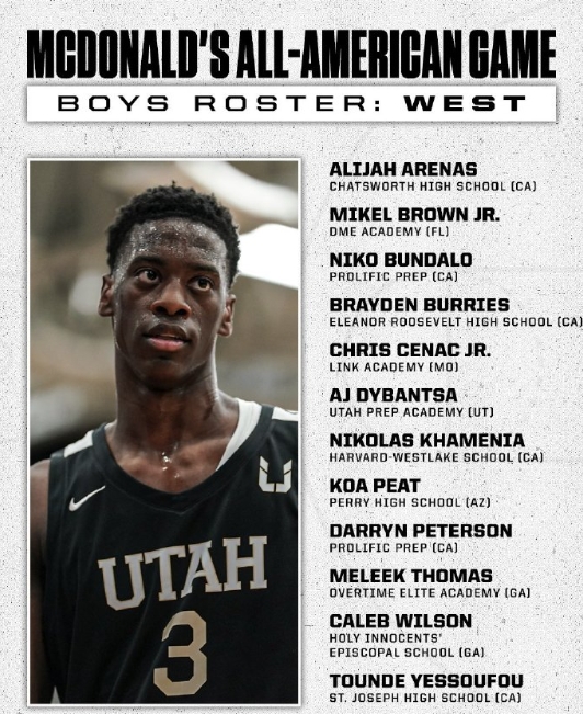 西部:阿利賈-阿里納斯、小米克爾-布朗、尼科-邦達(dá)洛、布雷登-伯里斯、小克里斯-塞納克、AJ-迪班薩、尼古拉斯-哈梅尼亞、科阿-皮特、達(dá)林-彼得森、梅里克-托馬斯、凱萊布-威爾遜、圖恩德-耶蘇烏。