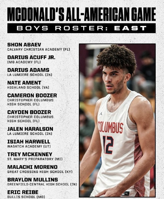 東部:肖恩-阿巴耶夫、達(dá)里厄斯-阿卡夫、達(dá)里厄斯-亞當(dāng)斯、內(nèi)特-阿門特、卡梅隆-布澤爾、凱登-布澤爾、杰倫-哈拉爾森、以賽亞-哈維爾、特雷-麥肯尼、馬拉奇-莫雷諾、布雷隆-馬林斯、埃里克-雷比。